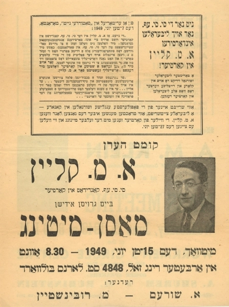 From 1932 to 1955, Klein was editor of the Canadian Jewish Chronicle and addressed subjects such as Nazism in Europe, Canadian Jewish social issues, and Zionism. In 1939, he began a long professional relationship with Samuel Bronfman and the Canadian Jewish Congress, working as a speechwriter and public relations consultant during one of the most critical moments in Canadian Jewish history, when the Congress was fighting domestic antisemitism as well as trying to save the Jews of Europe from Nazi oppression. In the midst of this busy period, Klein published in 1940 his first collection of poems entitled, Hath Not a Jew.