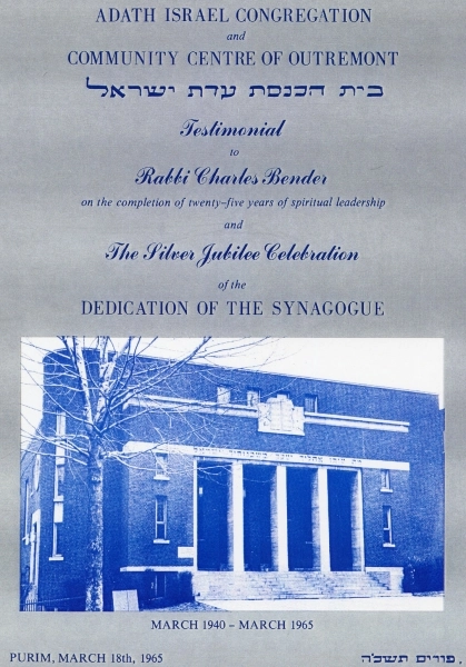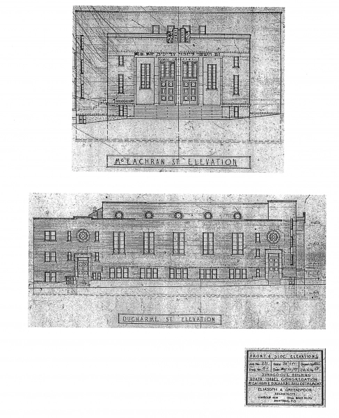 Adath Israel was established in 1930. The congregation worshipped in rented premises at 1357 Van Horne until the construction of the synagogue in 1940 at 899 McEchran in Outremont. This was the only synagogue in the Outremont/Plateau Mont Royal areas that was not in close proximity to other synagogues and was in an entirely residential setting. It was, the first synagogue in Montreal to define itself as a synagogue centre. All of these aspects foreshadowed what would be become a predominant post-war synagogue model across North America.
