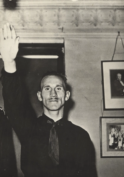 Adrien Arcand (1899-1967) was the undisputed leader of the Quebec fascist political movement, and an ardent antisemite. Fashioning himself as the “Canadian führer”, Arcand used his day job as a Montreal journalist to establish a series of weekly newspapers with Joseph Ménard. These included Le Miroir and Le Goglu, which began publication in 1929. Though some scholars have claimed wide circulation, from what can be ascertained through recent research, these papers had relatively small readerships. Their viewpoints, though, contributed to an already unwelcome atmosphere for Jews in Quebec in the 1930s. The kinds of opinions espoused in these papers included the idea that Jews should be “resettled” in Hudson Bay. Angered by the 1930 enactment of the David Law—developing a Jewish school system in Quebec—Arcand’s conservative newspapers took a radical turn to explicit fascism, an opinion that he already personally espoused. Arcand soon formed a political party in 1934: Le Parti national social chrétien. He also collaborated on an early campaign, the Achat chez nous movement, which co-opted the genuine economic and nationalist frustrations of French Canadians into a boycott explicitly aimed at Jewish stores.