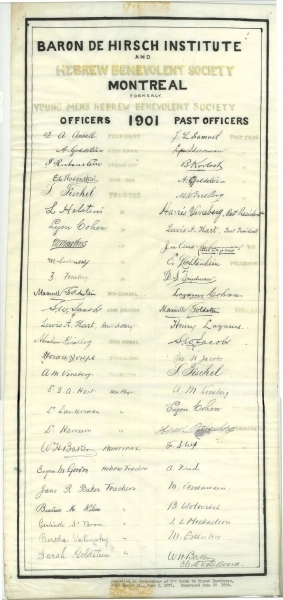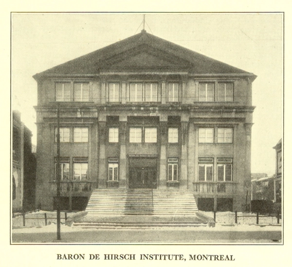 The Baron de Hirsch Institute (BdHI) was the hub of Jewish social services in Montreal for more than 100 years. Founded in 1863 as the Young Men’s Hebrew Benevolent Society (YMHBS), the Institute was renamed after 1890 in honour of the Austrian philanthropists Baron and Baroness Maurice and Clara de Hirsch, who became its benefactors. The first location of the Institute, a former store at 7 Elizabeth Street (the present-day site of the Champs-de-Mars metro station) was repurposed to serve as a school for the Jewish poor and as a sheltering home for immigrants and orphans.