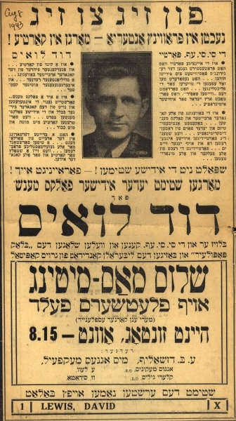 Lewis’ political involvement can be traced to his father, Moishe Lewis , who led the local Bund (Jewish socialist party) in the shtetl of Svisloch (in present-day Belarus). After immigrating to Montreal in 1921, Lewis worked in his uncle’s clothing factory, teaching himself English during school and work breaks.
