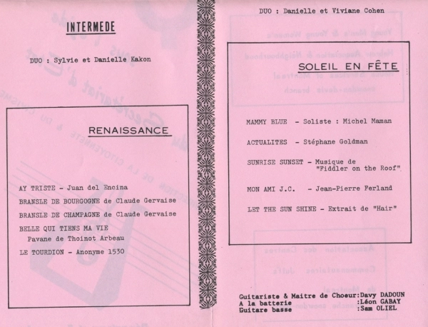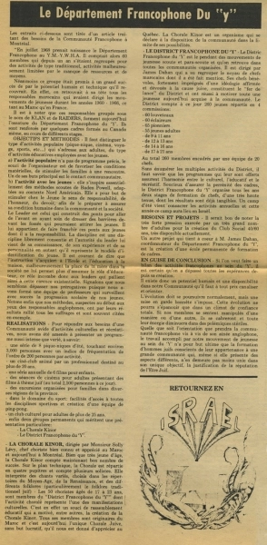The Département francophone du ‘Y’ was based out of the Snowdon YM-YWHA, but was hosting many of its activities at the Neighbourhood House by the mid 1970s. It ran a variety of social, recreational and cultural activities for young North African Jews, including the Chorale Kinor and scouting troops based on the traditions of the Éclaireurs Israélites of Morocco. In 1971, it hosted its first trip to Israel for Sephardic youth.