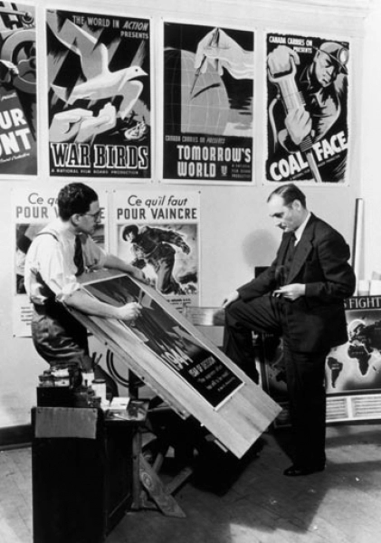 A first trip to Europe in the early 1930s instilled in him a sense of social engagement and political awareness. Like many artists of his time, he was drawn to socialism. His Communist Party affinities led him to the design of propaganda posters and his work attracted attention. Recruited by the National Film Board (NFB), he was appointed director of its Wartime Information Board in 1940. During the Second World War, he designed numerous posters to promote the war effort and recruitment. In the following decades, his activities included his participation in an exhibition at the Montreal Museum of Fine Arts commemorating the national bicentenary of Canadian Jewry (1995) and his work as chairman of the board of the theme committee for Expo 67. He also wrote and illustrated a dozen books, including The Other One (1973), How Architecture Speaks and Fashions our Lives (1996) and Way to Go (2004). In the 1950s, he drew a regular comic strip for the Westmount Examiner.