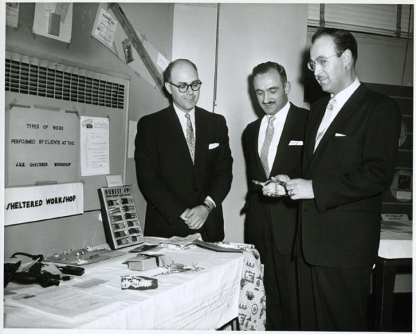 Dr. Alfred Feintuch became Executive Director of JVS in 1950 and oversaw the creation of the first sheltered workshop in the basement of the Herzl Health Centre located at 4652 Jeanne-Mance. The workshop provided people, disadvantaged due to advanced age or physical or mental disabilities, training to enter competitive industry, or counseling and employment in a Jewish milieu for those who could not. The sheltered workshop increased the number of its employees and expanded its facilities, moving to various locations on Van Horne, Ducharme, Buchan, and Royden streets. Its modern incarnation is the Jewish Employment Montreal (JEM) Workshop, located at 8400 Mountain Sights. In 1979, the Workshop became a Centre de travail adapté with support from l’Office des personnes handicapées du Québec (OPHQ). Employees of the workshop are guaranteed minimum wage and benefits under Quebec employment laws.