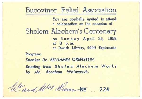 Many of Montreal’s associations served political as well as social roles, pressuring both the Canadian and home governments to take action for their Jewish landsmen (fellow Jews from the same town). The Federation of Polish Jews of Canada insisted that the Polish government address the abysmal conditions to which Jews were subjected during the Second World War; the United Bukoviner Society sent ‘CARE’-like packages to relatives in Soviet Ukraine during the 1960s; and the North End Vilkomer Sick Benefit Society raised funds to support the Lithuanian independence effort in 1919-1920.