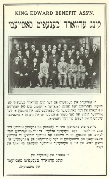 While most of these “immigrant hometown associations” named after their community of origin were secular, names preceded by ‘Anshe’ (People of) or ‘Khevre’ (Friends of) indicated affiliation with a synagogue. (Some examples of these synagogues in Montreal include Anshei Galicia, Anshei Moroshe, Anshei Ozeroff, Beth Hakneseth Anshei Ukraina, Knesset Israel Anshei Poland, and the Pinsker Kinyan Torah.) Associations were led by men, though women’s auxiliaries existed. With the exception of a number of landsmanshaften that aligned with the Arbeiter Ring (the socialist Workmen’s Circle) or Poale Zion (Labour Zionists), the majority were non-ideological, addressing immigrants’ social and cultural needs.
