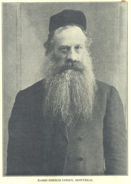 Une personnalité importante du leadership rabbinique de Montréal, le rabbin Zvi Hirsch Cohen (1862-1950) était reconnu comme le chef rabbin non officiel de Montréal et du Canada. Au cours d’une carrière qui a duré cinquante ans, le rabbin Cohen a été impliqué dans les disputes concernant la viande cachère en tant que directeur du Va’ad Ha-Rabbanim (Conseil rabbinique) du Va’ad Ha’Ir (Conseil de la communauté juive). Pendant les années 1920, il a recommandé l’existence d’un système scolaire juif séparé et il était un sioniste dévoué. Son influence dans la communauté juive est indéniable ; d’ailleurs, ses funérailles en 1950 ont suscité l’un des plus grands rassemblements de dirigeants rabbiniques et politiques dans l’histoire de Montréal.