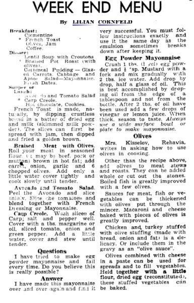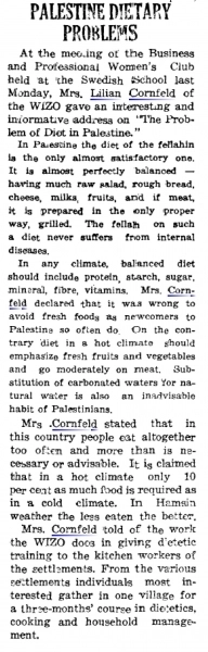 Cornfeld, Lilian. ""Filafel" Comes Into Its Own." Palestine Post [Jerusalem] 31 Dec. 1939: 10. Historical Jewish Press. The National Library of Israel. Web. 30 May 2011. .