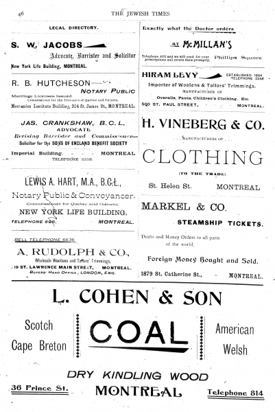 Faced with waves of immigrants who often spoke only Yiddish (which the Times labeled “a jargon of abrupt coarseness”), the Times declined in popularity and was bought in 1914 by Hirsch Wolofsky, owner of the Keneder Adler, who transformed it into the Canadian Jewish Chronicle. Cohen and Jacobs had meanwhile parlayed the publicity they received from the Times into further influence in the community. Jacobs was elected to Parliament in 1917 and Cohen became president of the Canadian Jewish Congress in 1919. When Cohen died in 1937, Samuel Bronfman, who in some ways was one of his successors, served as pallbearer at his funeral.