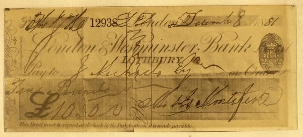 Formed in 1880, the Montefiore Club was established by a group of young Jewish men, aged fifteen to twenty-three, in response to a growing need for a social group for their peers. It grew into an exclusive club for many of the wealthiest and most influential members of the Jewish community. The club was named after Sir Moses Montefiore, the influential and highly regarded British Jewish philanthropist well known for rescuing captive Jews around the world and for supporting Jewish settlement in Palestine. In response to the club’s use of his name, Sir Moses not only sent his blessing, but also sent a ten-pound note. A copy of the note was put on display over the club’s entrance.