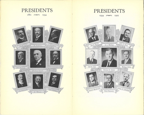 Members usually came from wealthy means, and had to demonstrate a lifelong commitment to the Jewish community. In its early years, key members of the Montefiore Club included Maxwell Goldstein, Michael Hirsch, Lyon Cohen, Samuel Jacobs, and Norman Genser. In the second half of the twentieth century, well-known men such as Allan, Harry, and Samuel Bronfman, Samuel Steinberg, Harry Batshaw, David Azrieli, Leo Kolber, and Samuel Godinsky were part of this select club. Members often made major decisions for the Montreal Jewish community, including founding the Federation of Jewish Philanthropies in 1917, and developing the Jewish General Hospital, which opened in 1934.
