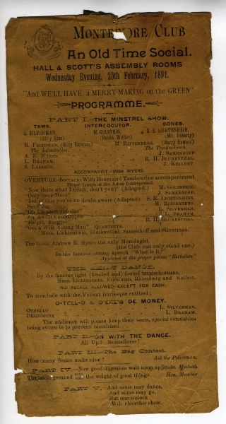 Formed in 1880, the Montefiore Club was established by a group of young Jewish men, aged fifteen to twenty-three, in response to a growing need for a social group for their peers. It grew into an exclusive club for many of the wealthiest and most influential members of the Jewish community. The club was named after Sir Moses Montefiore, the influential and highly regarded British Jewish philanthropist well known for rescuing captive Jews around the world and for supporting Jewish settlement in Palestine. In response to the club’s use of his name, Sir Moses not only sent his blessing, but also sent a ten-pound note. A copy of the note was put on display over the club’s entrance.