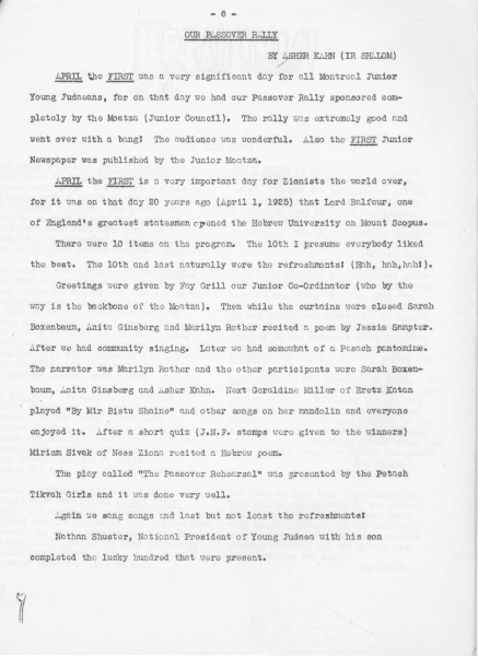 Young Judaea’s national headquarters was located in Montreal from the 1920s through the 1960s. Before becoming a celebrated poet, A. M. Klein served as YJ’s educational director and national president in 1934; he also edited their publication, The Judaean. The national office later published The Leader newsletter and the Dugma leadership training aid for Judaean leaders. It hosted the YJ Correspondence Club, connecting Jewish youth in Canada’s small towns. In 1942, Young Judaea opened Camp Hagshama in Mont-Tremblant, creating an intensive summer environment for its members.