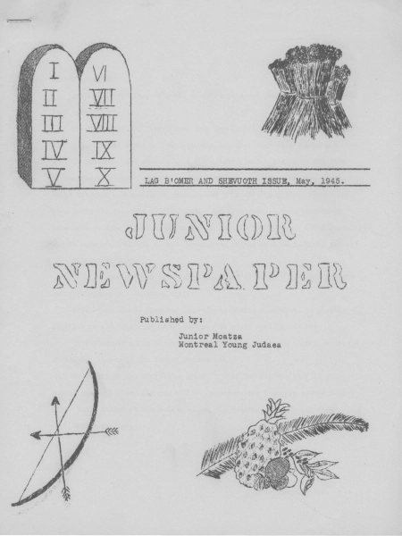 Young Judaea (YJ) or Yehuda Hatzair, Canada’s largest Zionist youth movement, was founded in 1909 in the United States. Canadian Young Judaea was officially founded in 1917 by Bernard (Dov) Joseph, who later served in the Israeli government, but the precursor to the group may have actually been active in Montreal as early as 1910. By the mid-1920s, YJ had expanded across Canada, and one of its most active chapters was in Montreal. As the youth division of Hadassah (the Zionist women’s organization) and the Zionist Organization of Canada (ZOC), YJ became the main vehicle for building Jewish identity among youth in smaller Canadian towns and among the children of “cheque-book Zionists” in cities. Members were initially attracted to its politically centrist stance, its emphasis on social action and Jewish identity, and its social gatherings. The group held fundraisers for the Jewish National Fund (JNF) and worked to combat indifference among youth through discussion groups on Jewish history, culture and Zionism.
