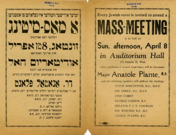 In the 1930s he worked on the Jewish Schools Bill, which became known as “The Bercovitch Bill.” The Bill, aimed at resolving the “Jewish School Question,” initially proposed that publicly-funded Jewish schools be established in Montreal if Protestant administrators and the Jewish community could not agree on the conditions for attendance at Protestant schools. After Bercovitch gave his bill more teeth by including the creation of a Jewish section in the Conseil de l’Instruction publique, Liberal Premier Louis-Alexandre Taschereau declared to the legislature that Bercovitch’s bill would lay the foundation for a new system of schools in the province.