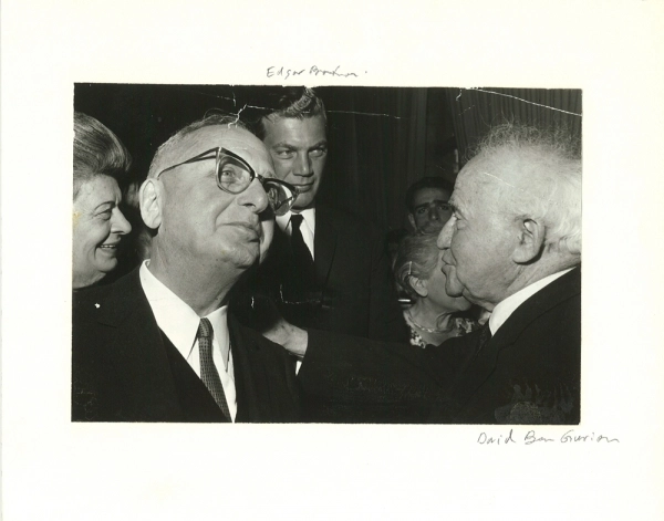 After the war, “Mr. Sam” became deeply involved in supporting the State of Israel. He funded Canadian pilots in Israel’s 1948 War of Independence, helped future Israeli Prime Minister Shimon Peres procure military equipment in the 1950s, and supported Israel in the 1967 Six-Day War. Bronfman met many of Israel’s leaders, including Golda Meir in 1948 and David Ben-Gurion at the opening of the Israel Museum (which Bronfman helped to fund) in Jerusalem in 1962.