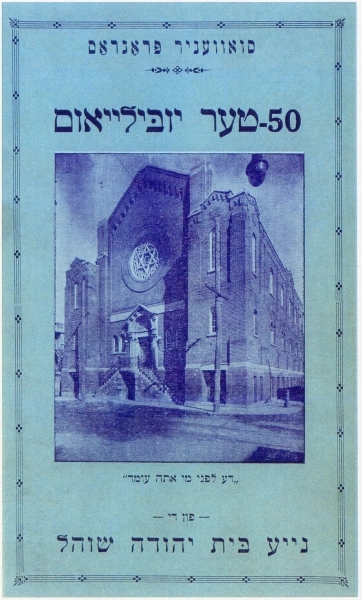 Historic outline – Beth YehudaThe 50th anniversary booklet of 1940 suggests that the congregation recognized its date of origin as being around 1890. According to this account, the Beth Yehuda originated with a small congregation of Hasidic followers of the Bohusher rabbi. They named the congregation Ohel Moshe after the Bohusher rabbi’s son. Worshipping at first in the home of Abraham Lang, the fledgling congregation rented space on Cadieux Street in 1902. It was with the purchase of a former theatre at 16 Lagauchetiere East, that the congregation was renamed Beth Yehuda.