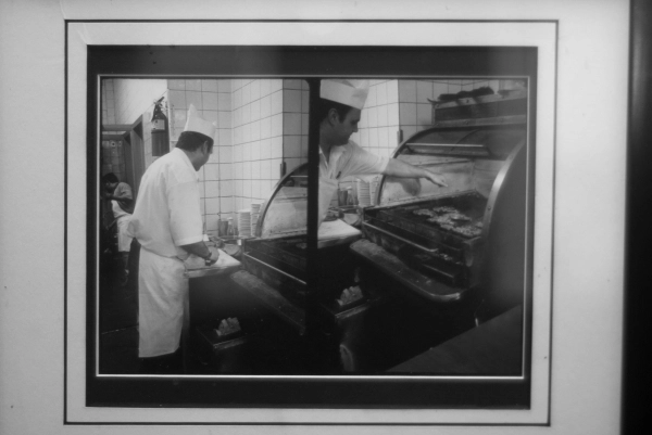 Another contender for Montreal’s smoked meat fame is the Montreal Hebrew Delicatessen, popularly known as Schwartz’s. Established in 1927 on St. Lawrence near Napoléon and using Romanian smoking techniques, the original owner, Reuben Schwartz, was forced to sell the business in 1932 due to his gambling and his womenizing. The new owner, a musician named Maurice Zbriger, was reluctant to have his name affiliated with a “pedestrian eatery” and rehired Schwartz as his manager to front for him. With the closing of Bens, many label Schwartz’s as the undisputed king of Montreal delis (although its competitors across the street at the Main Deli, as well as at Lester’s, Dunn’s and the Snowdon Deli would argue otherwise). Schwartz’s history is commemorated in Gary Beitel’s film, Chez Schwartz’s and Bowser & Blue’s Schwartz’s: The Musical.