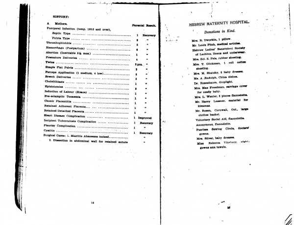 Le rapport annuel du Hebrew Maternity Hospital, 1919. Fin du rapport mu00e9dical. Liste des dons. u00a9 JGH Archives HGJ.